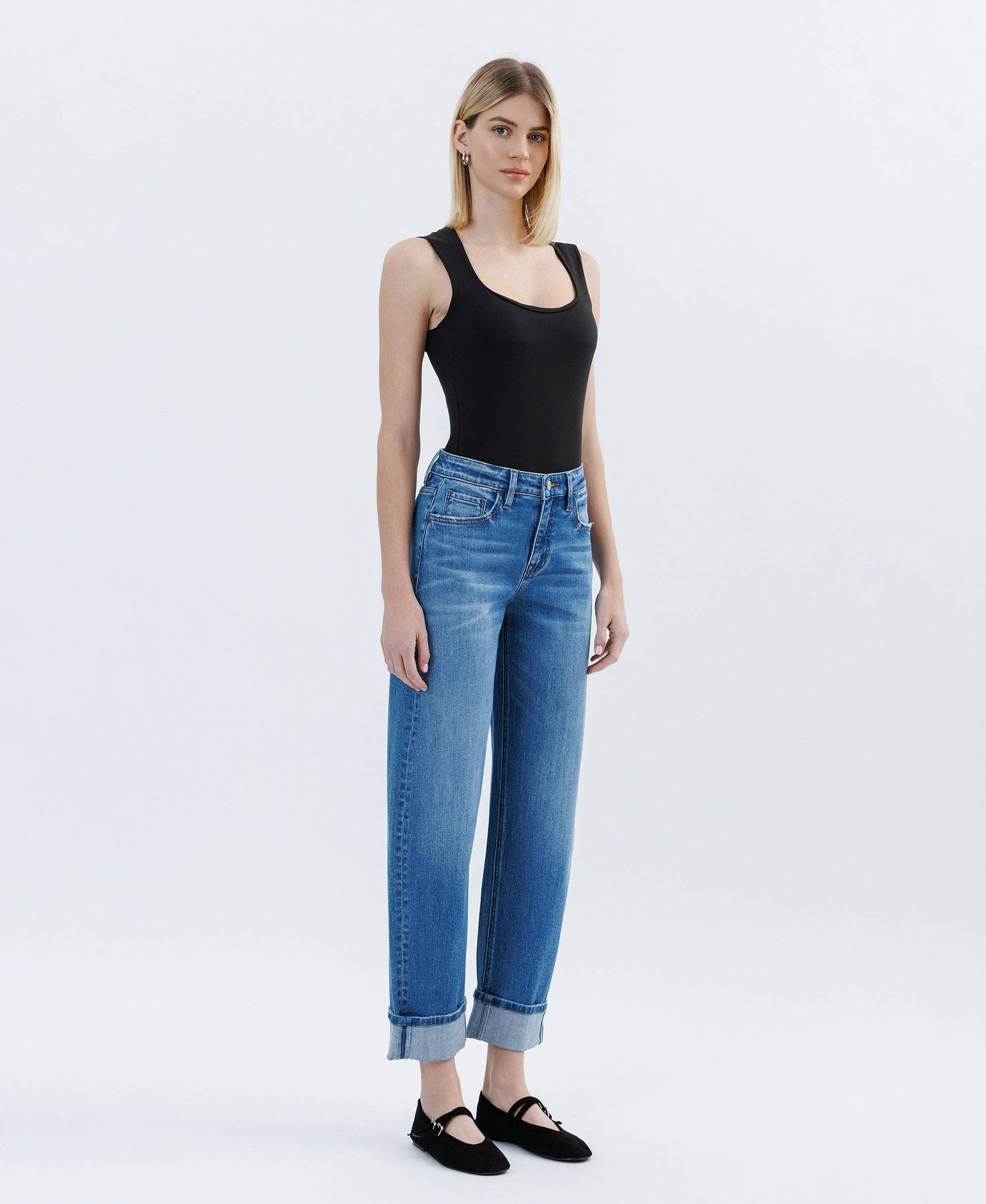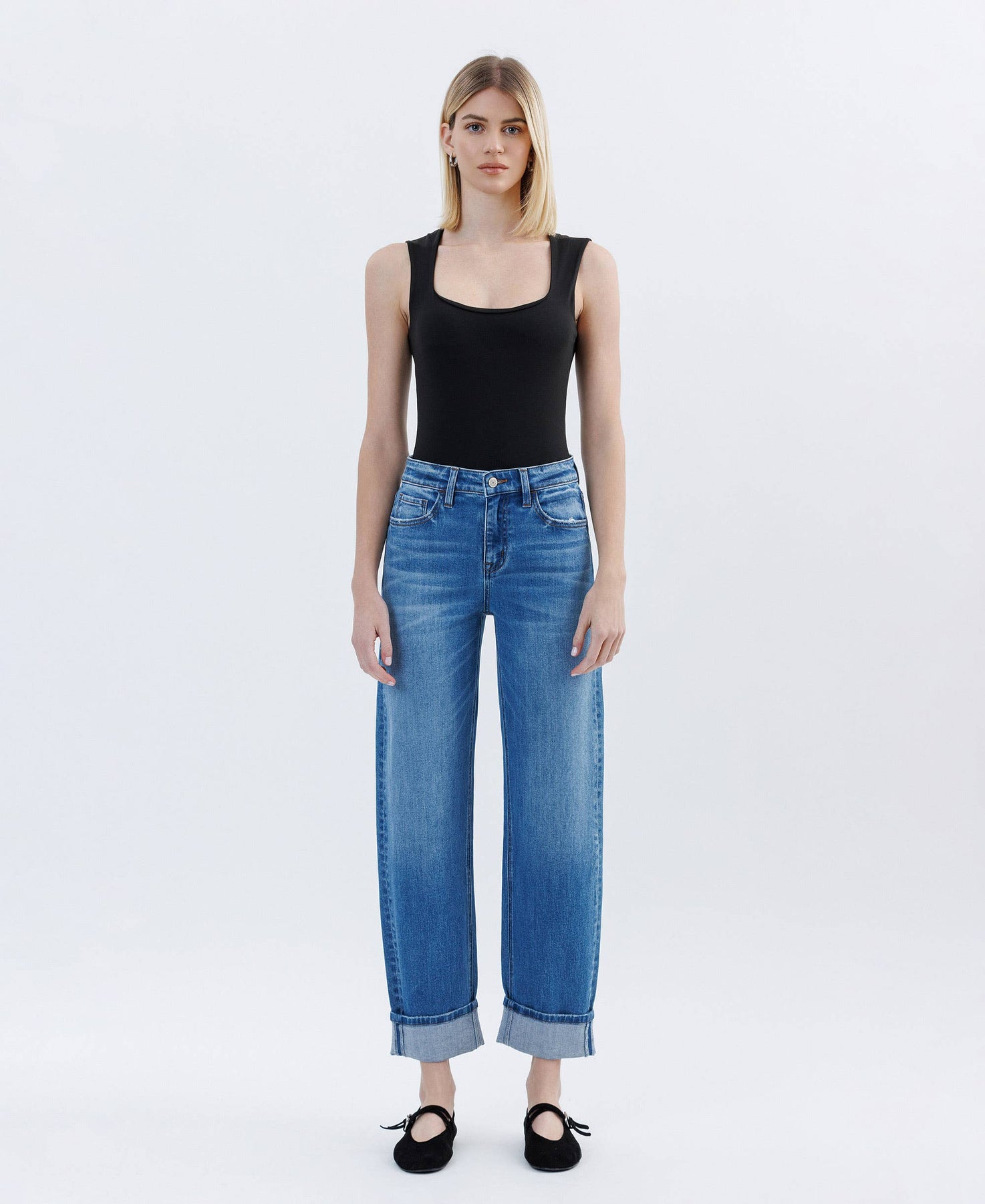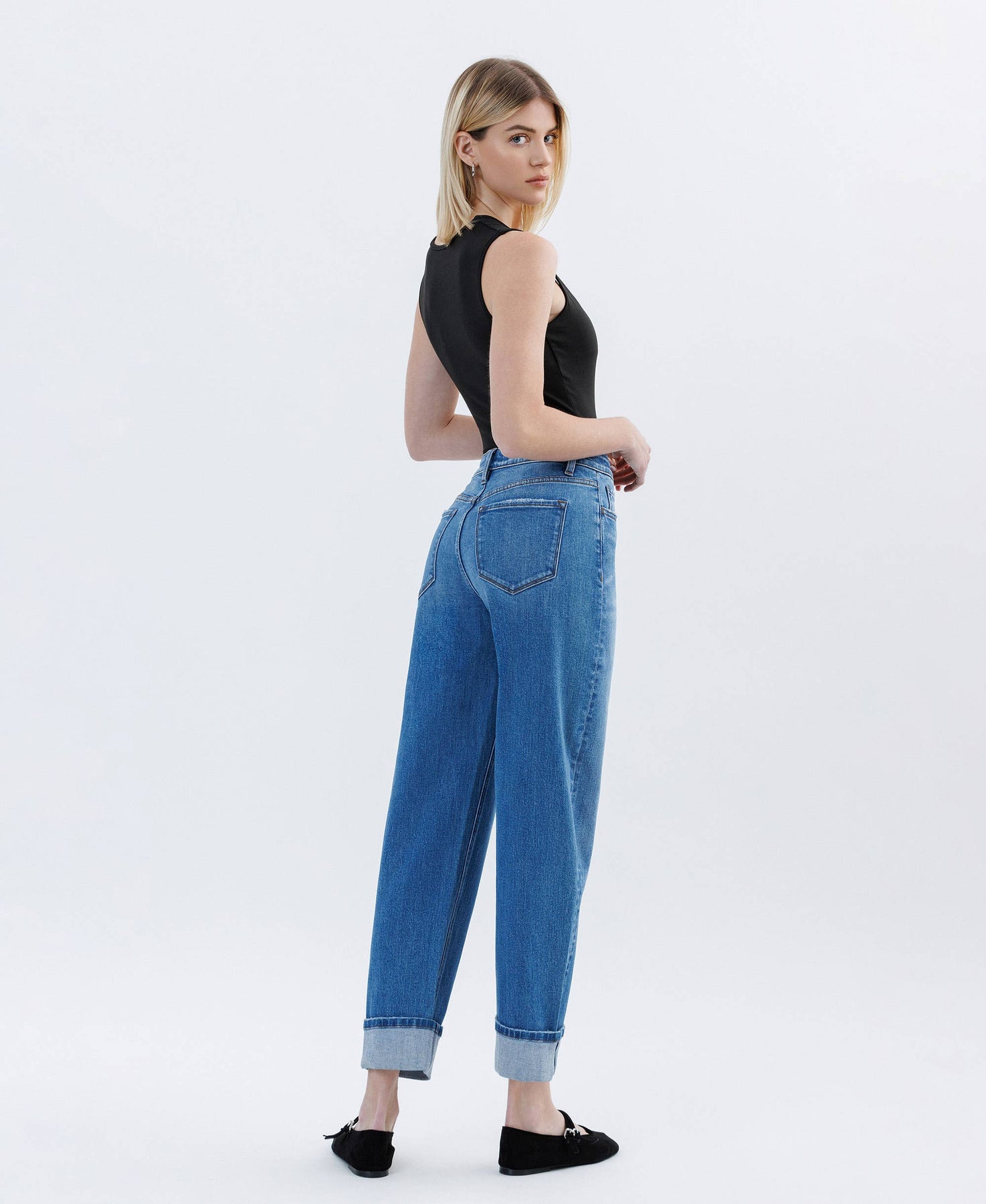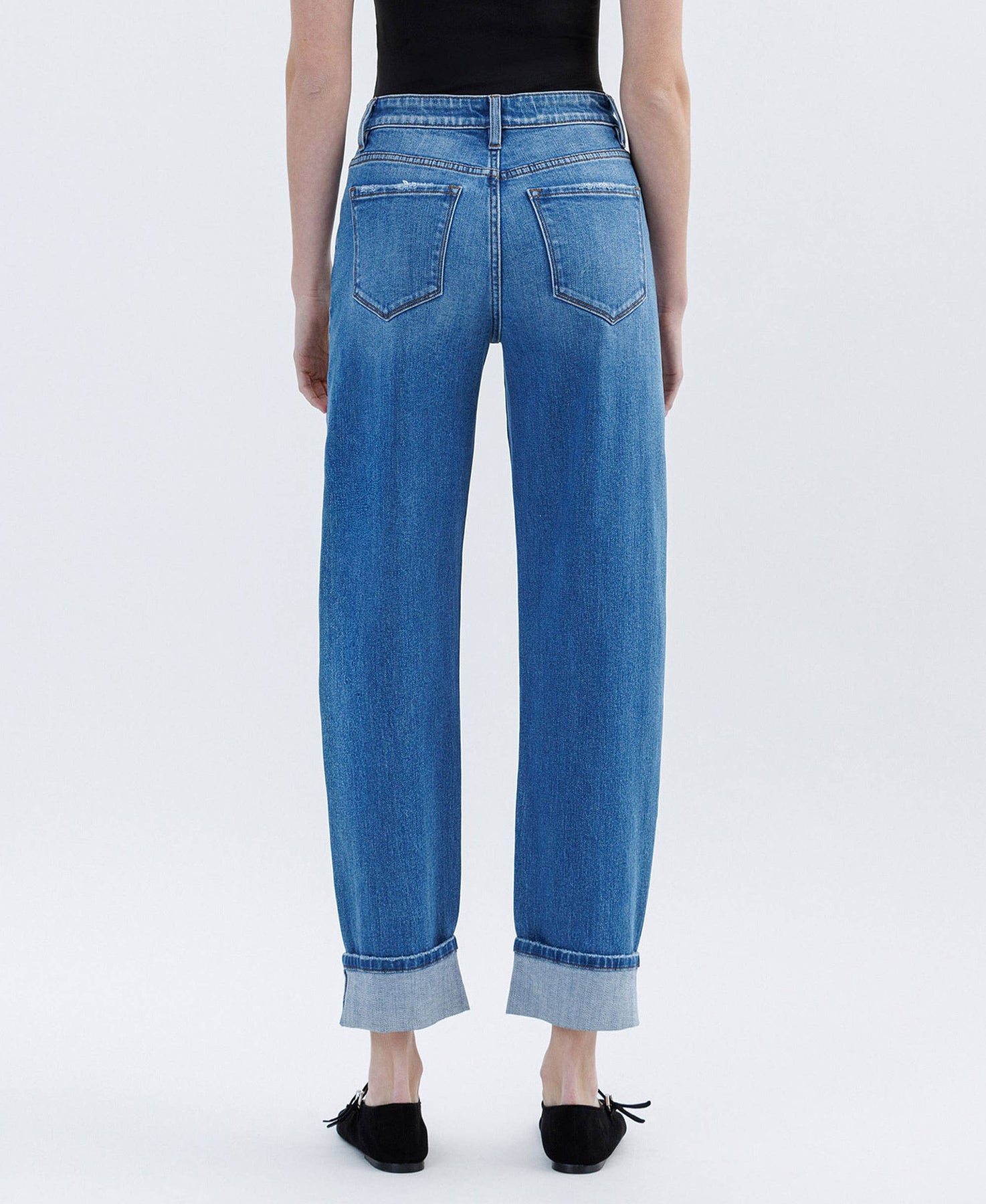 High rise cuffed barrel jean